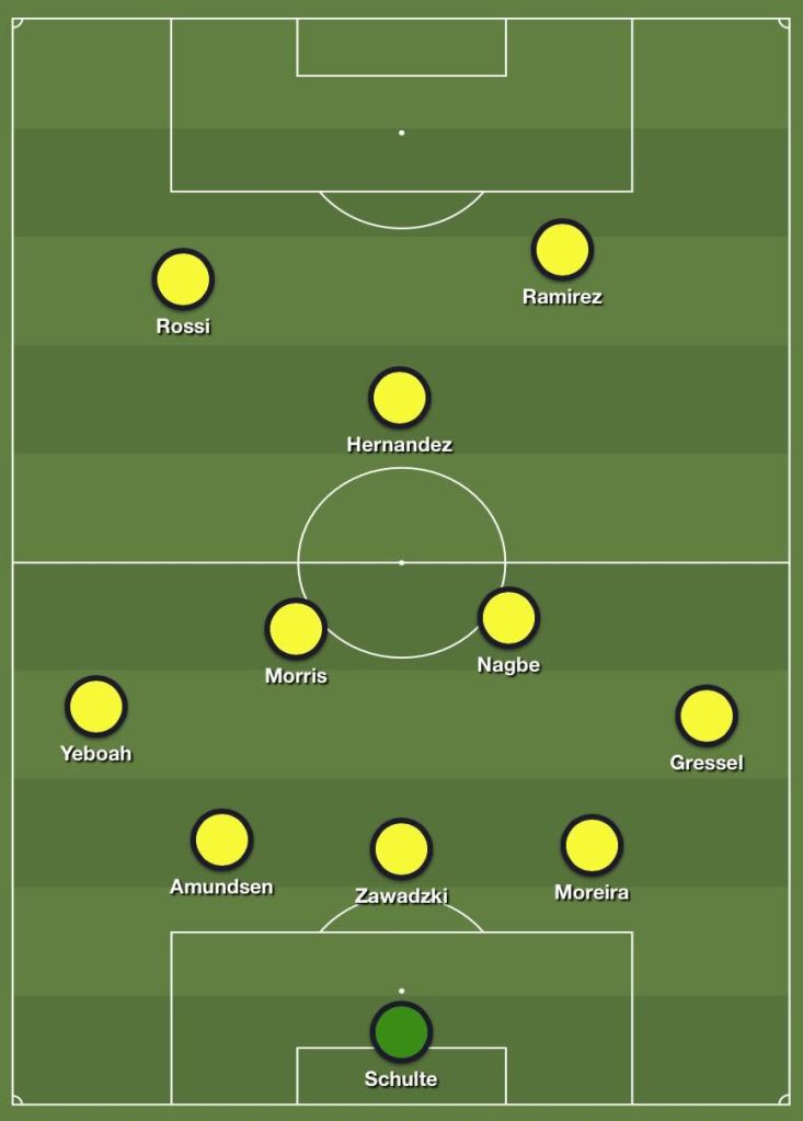 Wing back Julian Gressel will continue to start on the right while Yaw Yeboah will start as the left wing back.