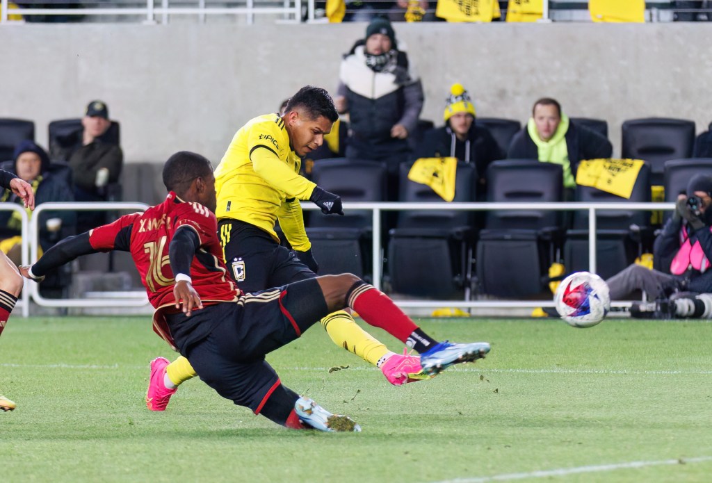 Columbus Crew took a 1-0 lead in the best of three playoff series vs Atlanta United at Lower(dot)com field in Columbus Ohio. Cucho Hernandez scored a goal in each half and the defense kept Atlanta to one off-target shot the entire game.