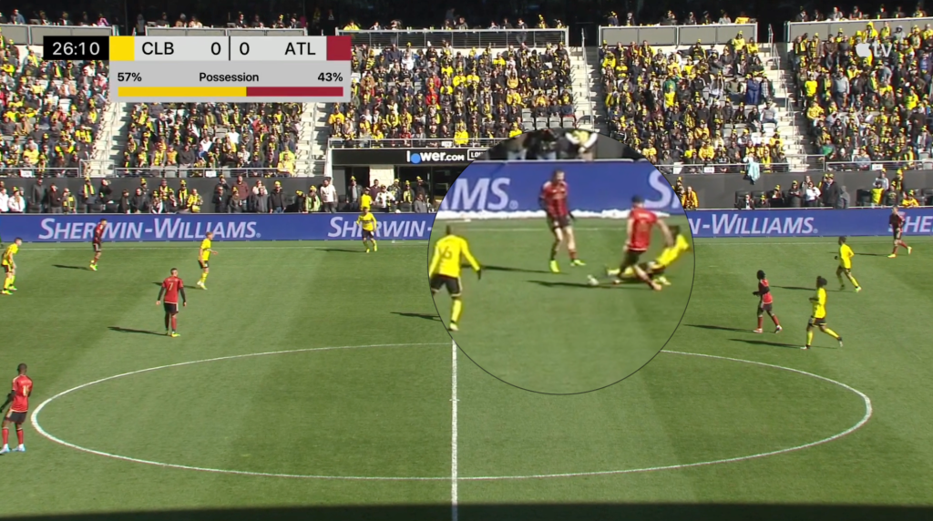 Hernandez’s goal begins with Atlanta in possession of the ball after a questionable foul call against the Crew.