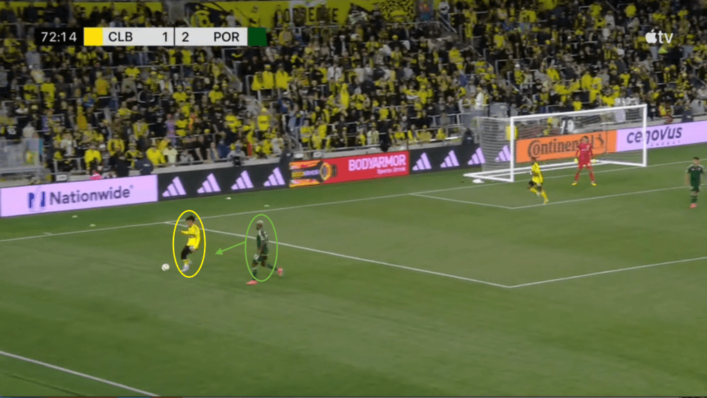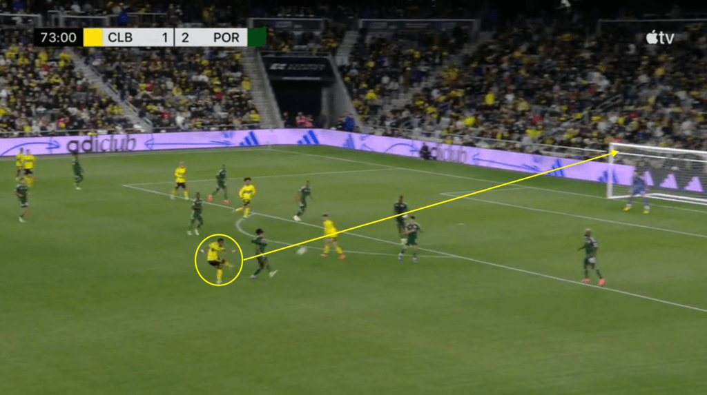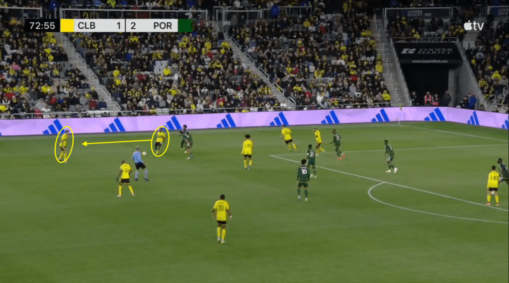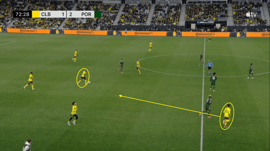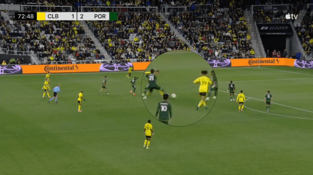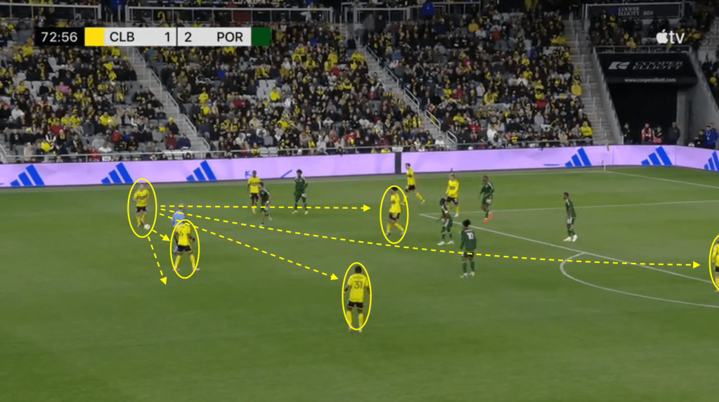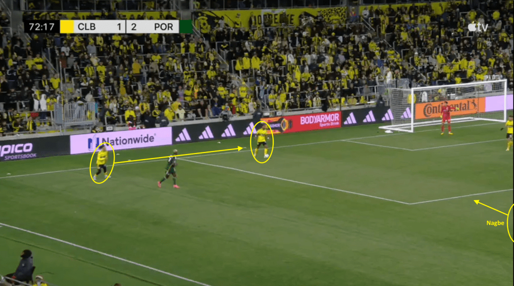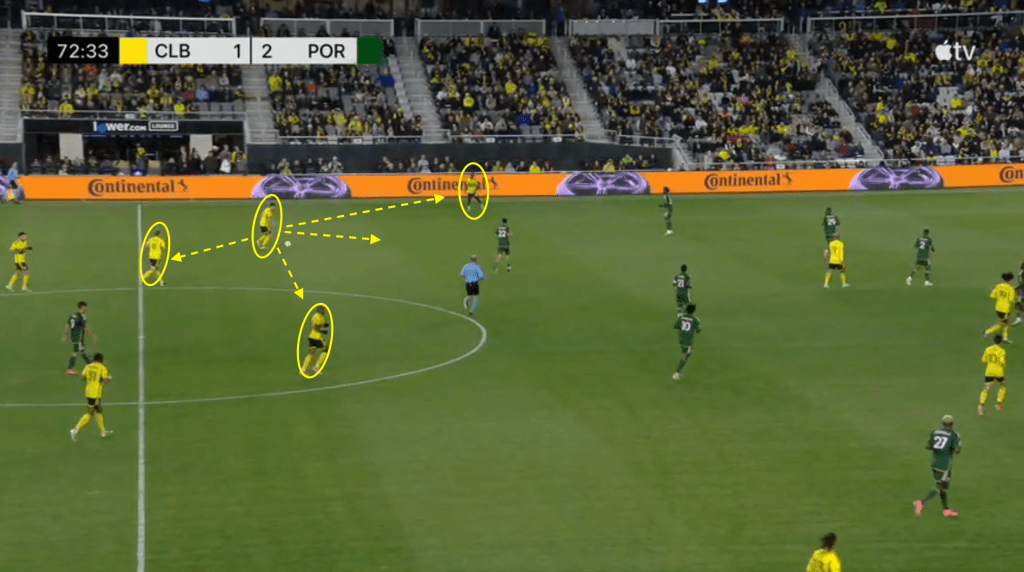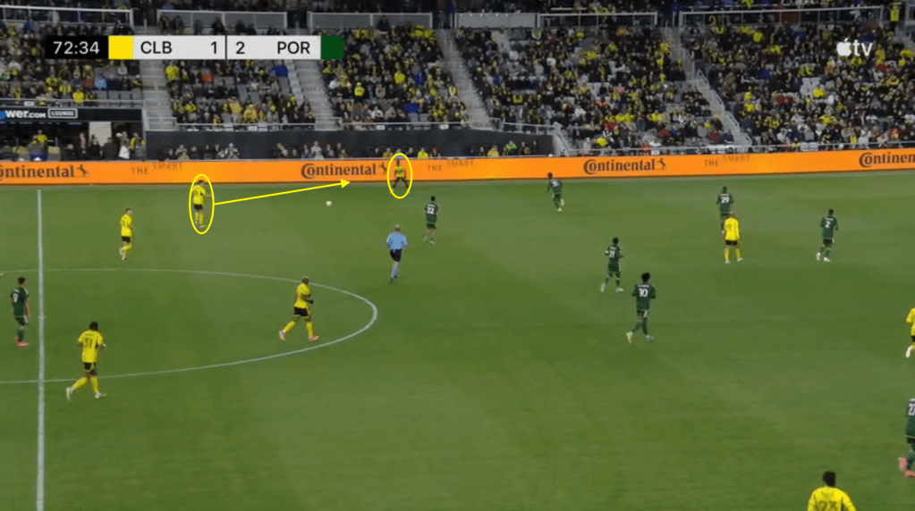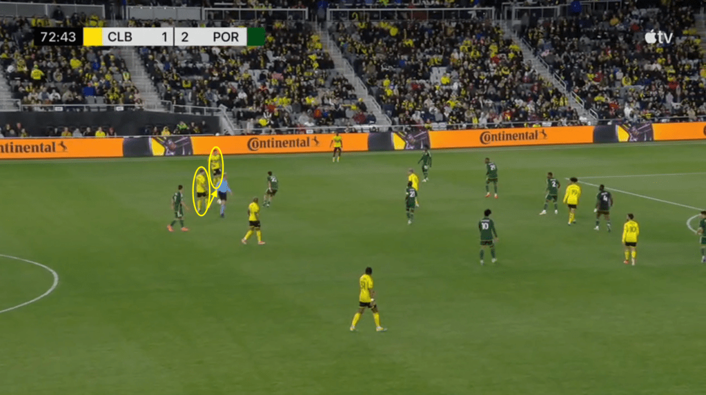 - This goal is the direct result of the Crew sticking with the play even after losing the ball. Portland should have stopped this attack on at least two occasions but Columbus jumped to counter-press and was able to quickly win the ball back.