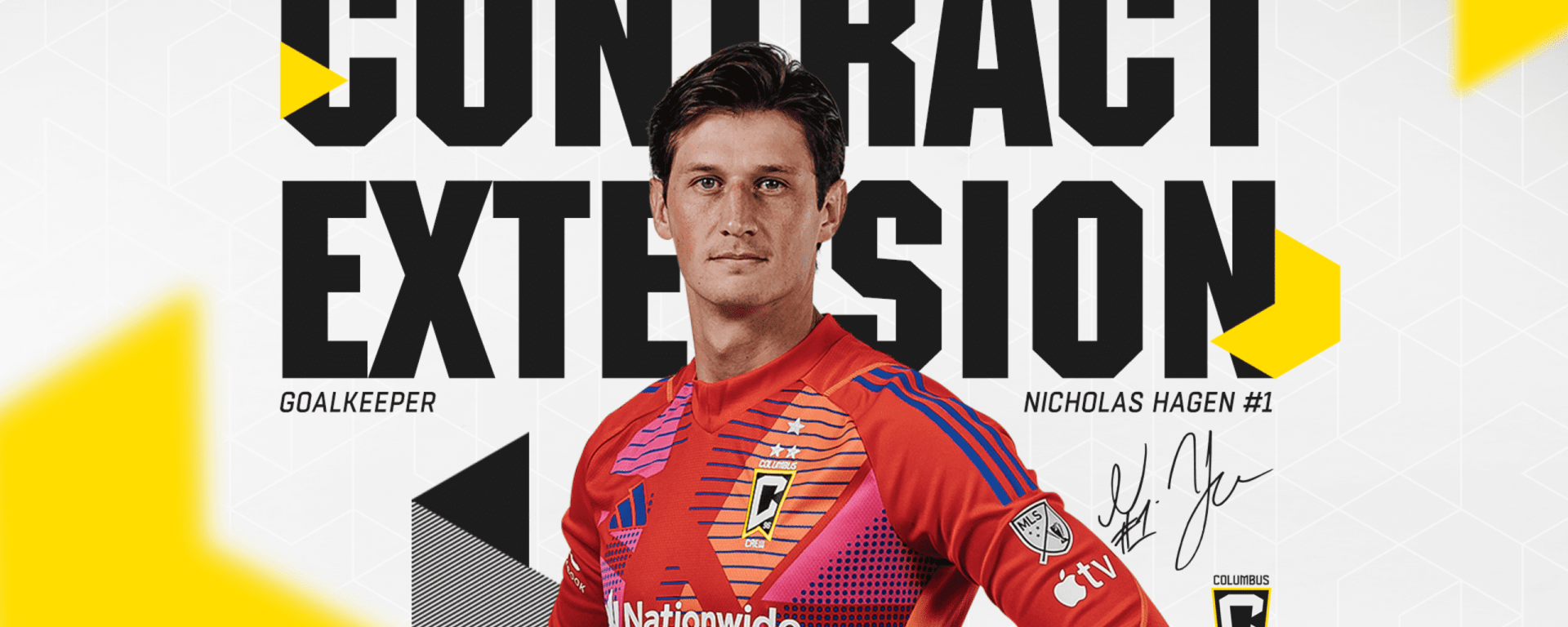 The Columbus Crew announced on January 9th that it has re-signed goalkeeper Nicholas Hagen to a contract extension through the 2026 season, with options for 2027 and 2028.