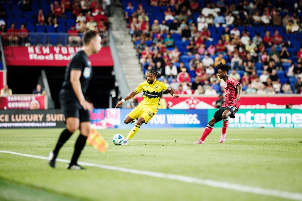 An underwhelming first half saw the Black & Gold maintain possession with 55%, but register zero shots in totality. For the Red Bulls, Eric Maxim Choupo-Moting became the standout player with two quality chances in the first half. His first came just nine minutes in, when he entered the penalty area and began dancing around Sean Zawadzki before unleashing a soft shot with his right foot that was easily claimed by Crew goalkeeper Patrick Schulte. The Cameroonian forward has another chance midway through the first period, when he got around Schulte and had a shot on goal from just inside the 18-yard box. Max Arfsten was quick to get back to the goal line, blocking the shot and ricocheting it off the near post. The Crew were saved by the offside flag, but questions arose about the accountability of the backline.