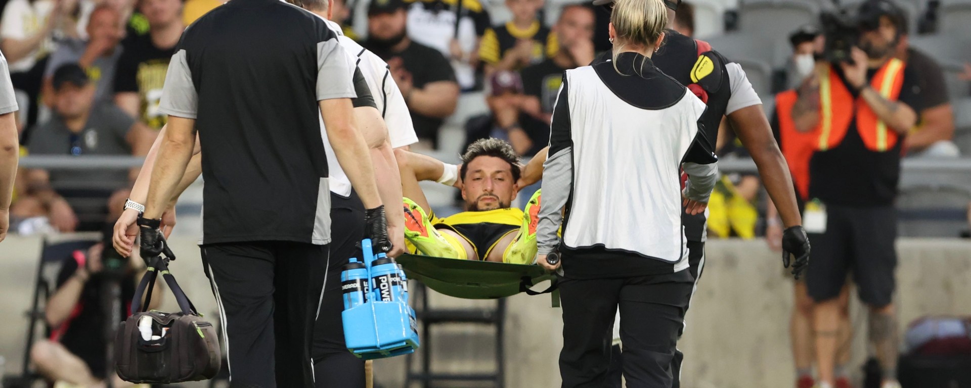 Abou Ali went down again in the 32nd minute on a no-contact run inside the penalty area, this time motioning for Columbus to use a substitution window. He was soon stretchered off and taken down the away tunnel, visibly upset.